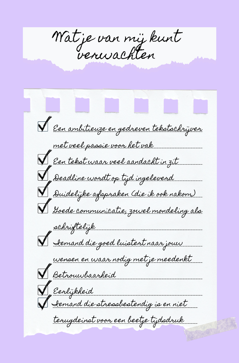 Ben jij bijvoorbeeld de ondernemer die het al benauwd krijgt bij het idee dat er nog teksten moeten worden geschreven voor je eigen website of werk jij bij het bedrijf dat toevallig een tekstschrijver zoekt? Of zoek je een freelancer die interviews doet en/of uitwerkt of op reportage gaat? Neem vrijblijvend contact met me op en wie weet kan ik wat voor jou betekenen.